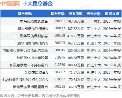 根据2023半年报公募基金重仓股数据,重仓该股的公募基金共32家,其中持有数量最多的公募基金为中海优质成长混合。中海优质成长混合目前规模为16.64亿元,最新净值0.3526(8月11日),较上一交易日下跌2.0%,近一年下跌5.29%。该公募基金现任基金经理为许定晴。许定晴在任的基金产品包括:中海进取收益混合,管理时间为2016年7月29日至今,期间收益率为51.16%;中海海颐混合A,管理时间为2021年11月16日至今,期间收益率为0.41%。