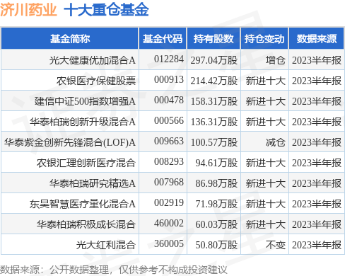根据2023半年报公募基金重仓股数据,重仓该股的公募基金共31家,其中持有数量最多的公募基金为光大健康优加混合A。光大健康优加混合A目前规模为12.75亿元,最新净值0.7084(8月11日),较上一交易日下跌0.27%,近一年下跌11.64%。该公募基金现任基金经理为徐晓杰。徐晓杰在任的基金产品包括:光大红利混合,管理时间为2020年10月22日至今,期间收益率为-15.27%;