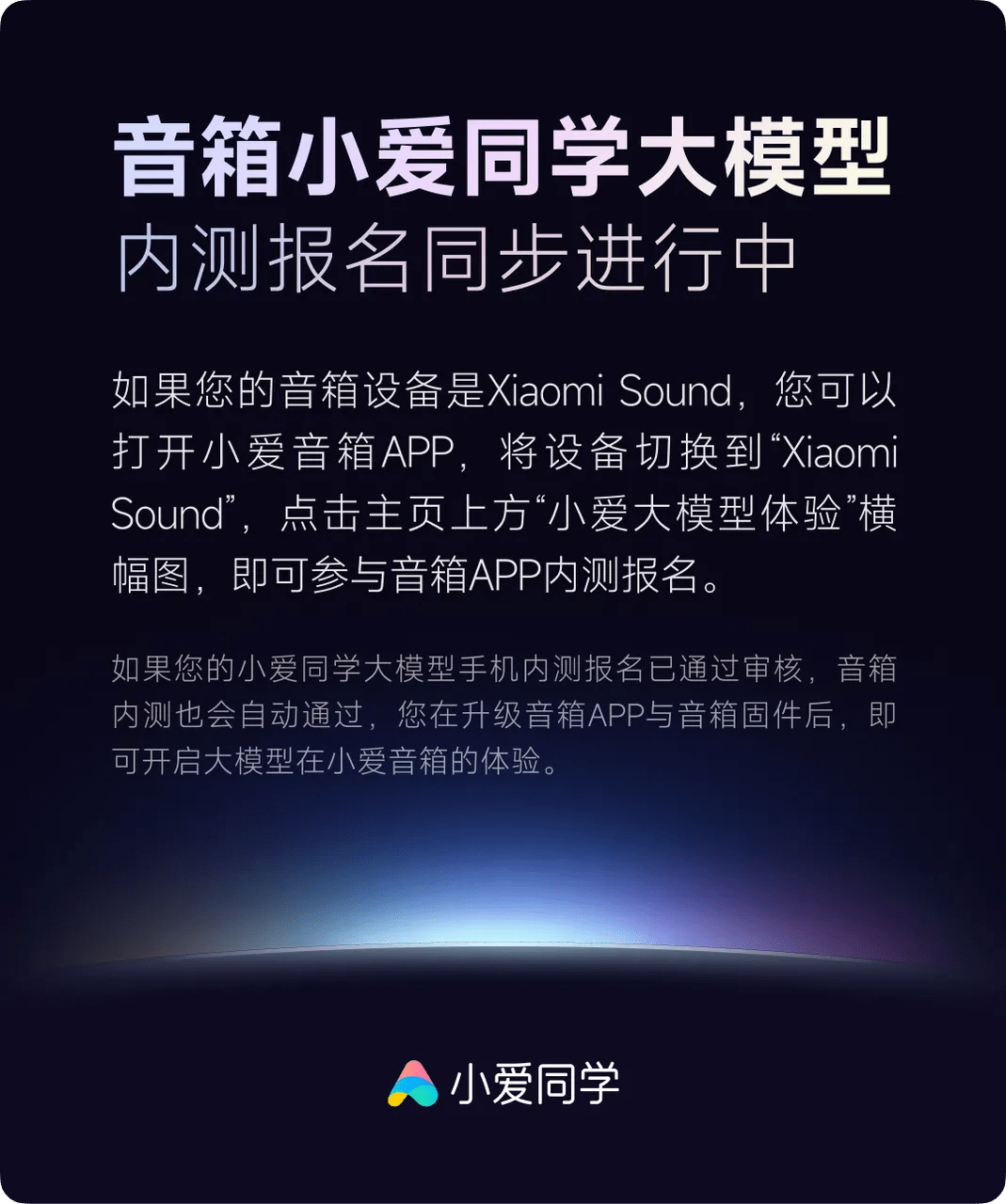 1. 本次邀测版本非最终上线形态,目前体验细节和效果仍有很多问题,需要持续迭代打磨,我们将在邀测之后进行修复,完善体验,感谢您的理解与支持,小爱还在学习中,请大家多一些耐心哦~ 2. 如果您将小爱大模型用于非正常用途,会取消内测资格哦!
