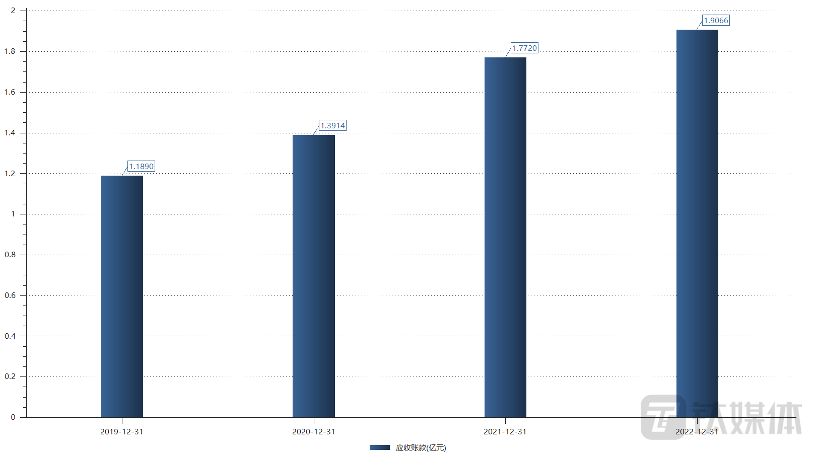 此外,公司应收账款也在逐年增加。2020年—2022年,公司应收账款账面价值分别为1.39亿元、1.77亿元、1.9亿元,而同期流动资产则分别为2.55亿元,4.87亿元,4.09亿元。从数据上来看,有的年份应收账占流动资产比例甚至高达50%。