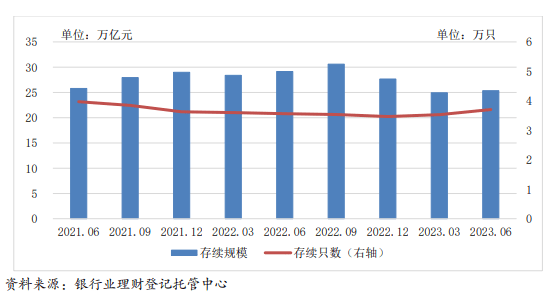 事实上,自2022年9月以来,银行理财产品存续规模便呈现出震荡下滑趋势。截至2023年6月末,银行理财存续规模较2022年末下滑2.31万亿元,较2022年9月末下滑超4万亿元。