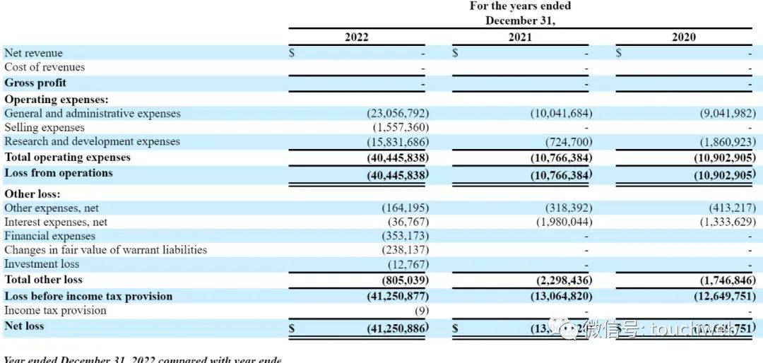 据年报显示,纽顿汽车在2020年、2021年、2022年均无营收,同期运营亏损分别为1090万美元、1077万美元、4045万美元。
