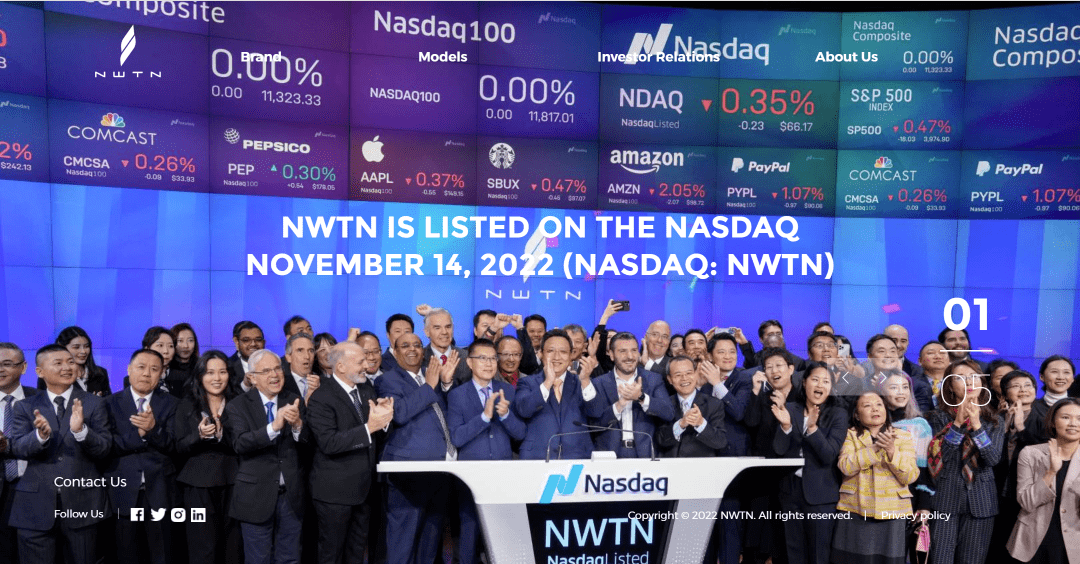2022年10月24日,纽顿和纳斯达克上市的特殊目的收购公司East Stone Acquisition Corporation向美国证券交易委员会(SEC)提交了最终合并代理声明,并完成与NWTN的业务合并,进而实现曲线上市。