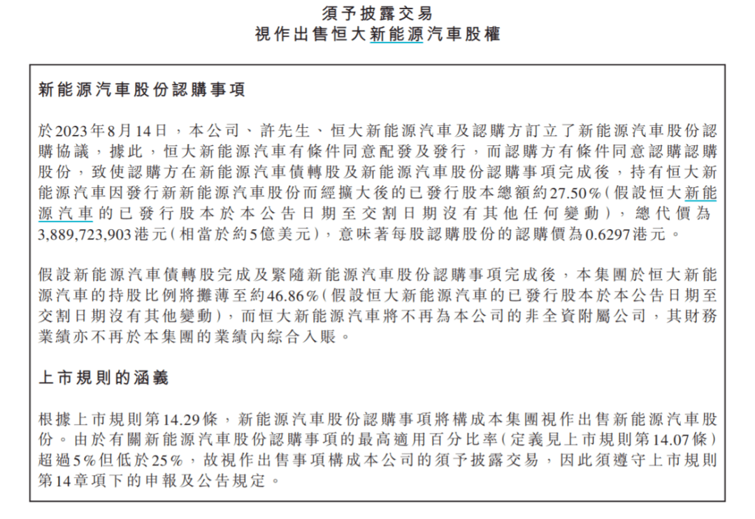 此外,恒大汽车发布公告称,作为中国恒大集团债务重组的一部分,以及为降低恒大汽车的债务水平,将总额208亿多港元的相关贷款按每股3.84港元的转换价转换为新股份。