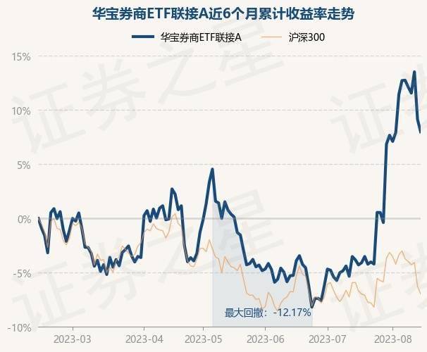 8月14日,华宝券商ETF联接A最新单位净值为1.4297元,累计净值为1.4297元,较前一交易日下跌1.04%。历史数据显示该基金近1个月上涨12.27%,近3个月上涨7.96%,近6个月上涨7.97%,近1年上涨8.66%。该基金近6个月的累计收益率走势如下图: