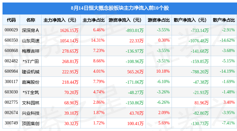 从资金流向上来看,当日恒大概念股板块主力资金净流出5355.43万元,游资资金净流入1286.99万元,散户资金净流入4068.44万元。恒大概念股板块个股资金流向见下表: