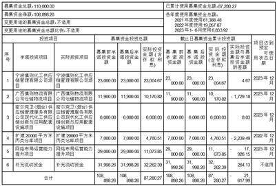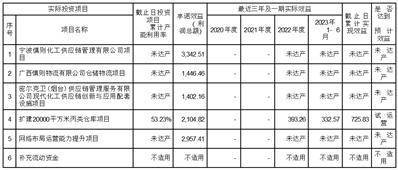 注1:除扩建20000平方米丙类仓库项目外,截止日其余投资项目均未达到预定可使用状态,无法计算实际效益和累计产能利用率。
