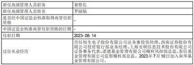 2 新任高级管理人员的相关信息