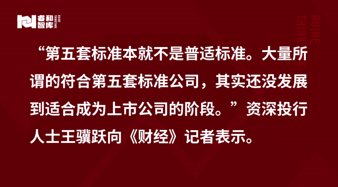 多位投行人士认为,第五套标准或将面临调整,“从目前以第五套标准上市的科创板企业来看,不管是盈利情况还是二级市场表现,都十分不理想。”