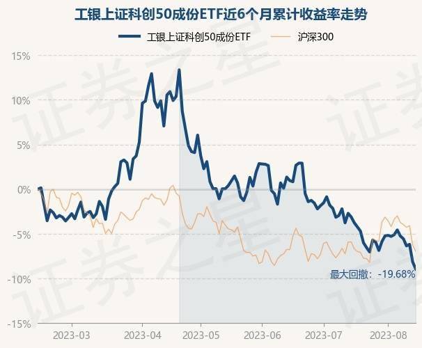 8月14日,工银上证科创50成份ETF最新单位净值为0.9599元,累计净值为0.6689元,较前一交易日下跌0.88%。历史数据显示该基金近1个月下跌6.01%,近3个月下跌7.92%,近6个月下跌8.91%,近1年下跌19.06%。该基金近6个月的累计收益率走势如下图: