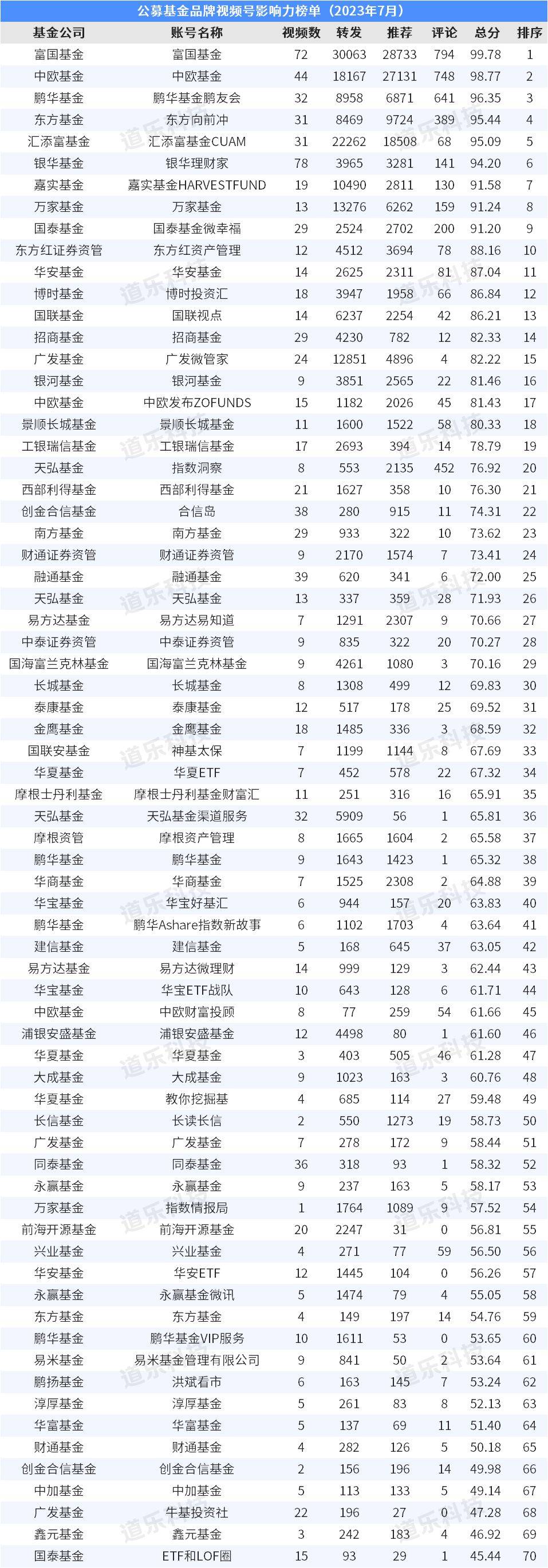 3. 如一家公募基金品牌有多个视频号,则取整体指标表现较好的视频号进行评分排名;