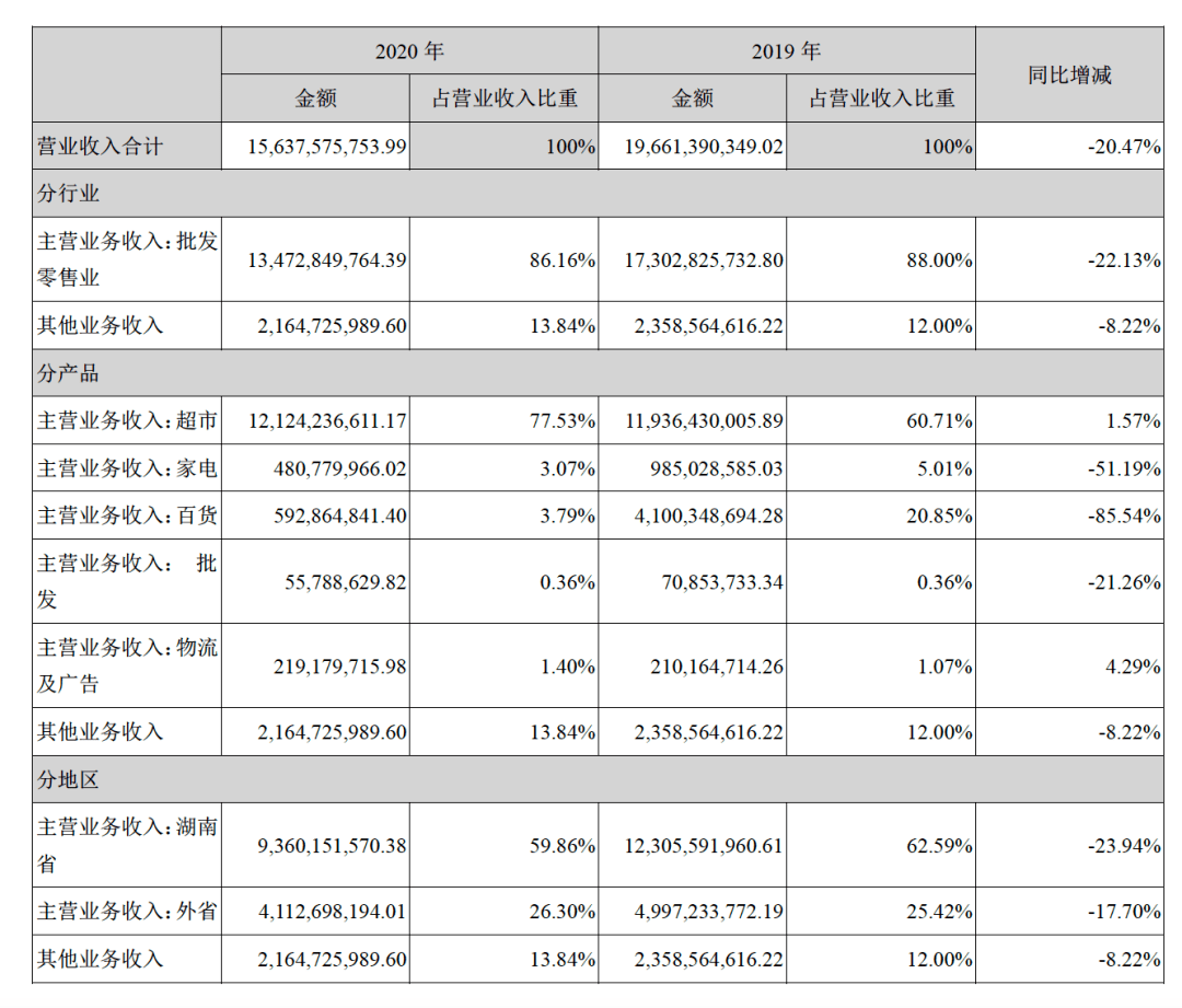 分地区来看,在步步高的主营业务收入构成中,湖南省营收占其整体营收的60%左右,是其它省份的2倍以上。