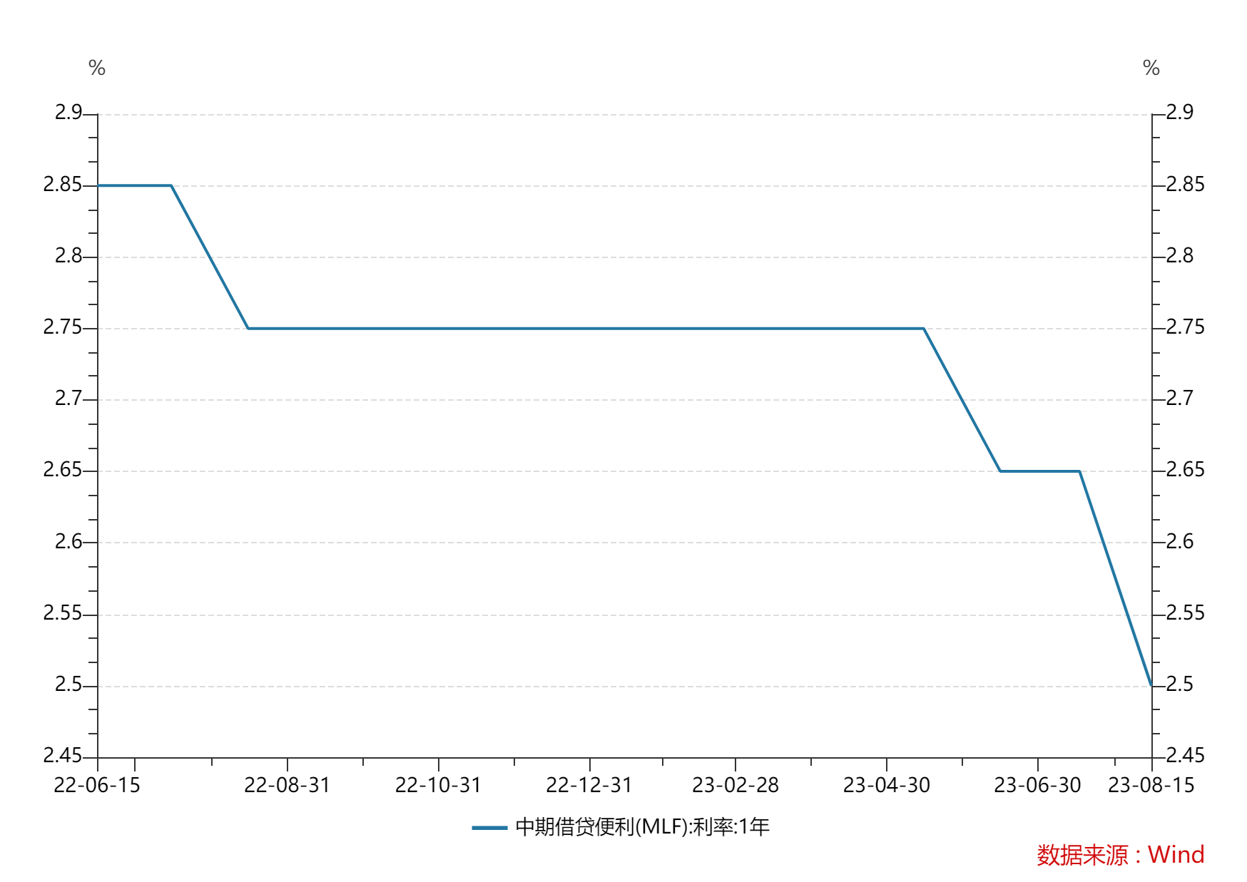 8月MLF利率下调15个基点至2.5% 图片来源:Wind客户端