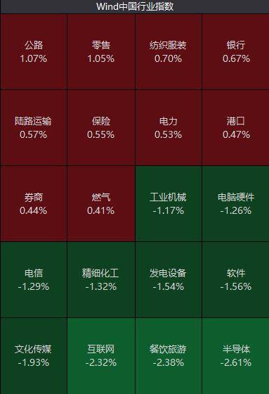 盘面上,上午半导体、互联网、文化传媒、软件板块跌幅靠前,人工智能、光伏题材表现低迷;大金融、大零售微涨,医药电商概念股活跃。