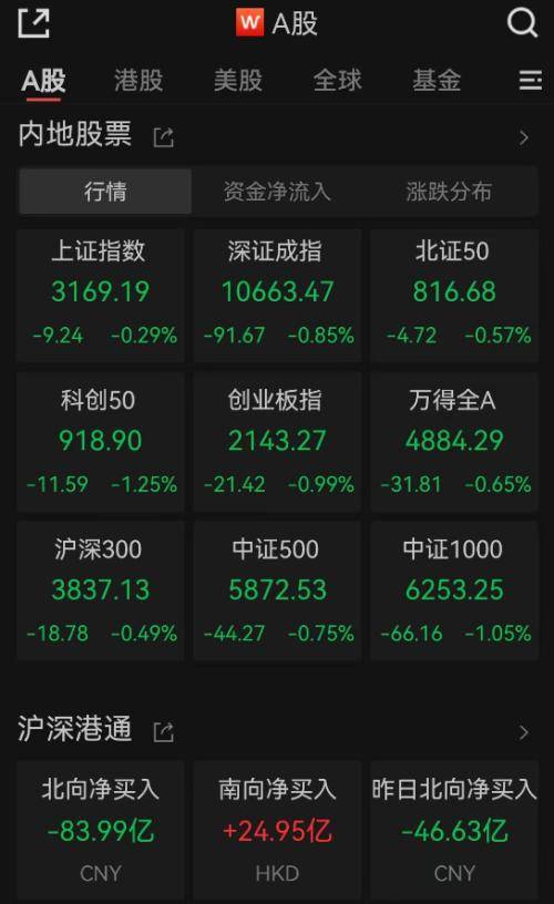 8月15日上午,大A股震荡走低。截至午间收盘,上证指数缩量跌0.29%,深证成指跌0.85%,创业板指跌0.99%。上午交易清淡,半日成交额4280亿元,北向资金净卖出近84亿元。