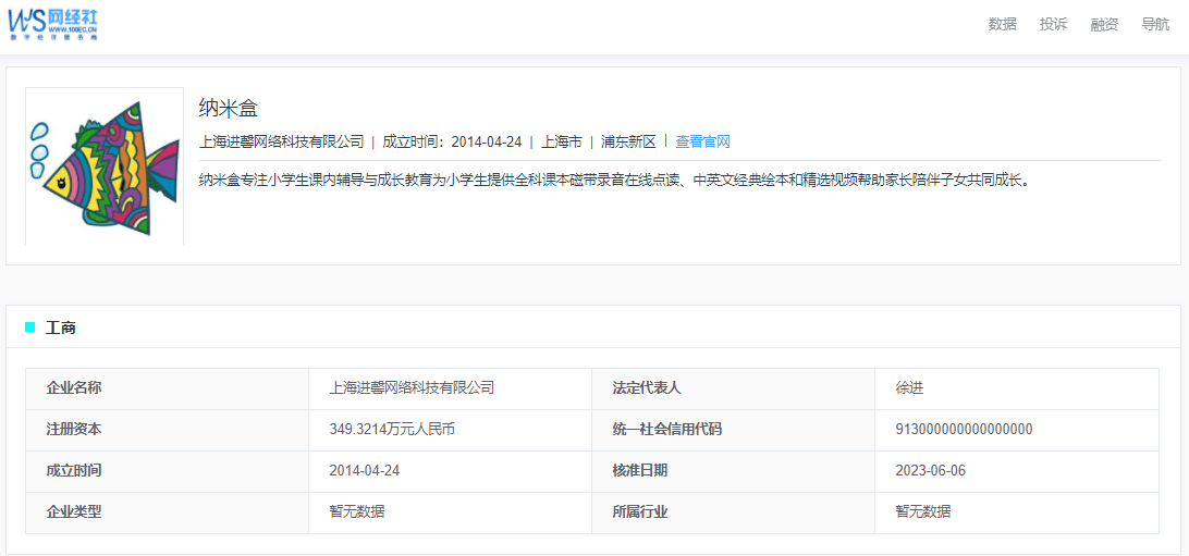 据网经社企业库(COP.100EC.CN)显示,纳米盒成立于2014年,隶属于上海进馨网络科技有限公司,法定代表人徐进。作为一个数字课本及智慧阅读服务平台,基于AI/AR/VR/数字人等技术,为K9学生为主的用户群体提供数字教育内容,通过与国内一线课本出版商合作,纳米盒可提供中小学主流课本的数字版本,主要涵盖中国K9学校使用的中文和英语科目,迄今为止已对21家出版社出版的383本课本进行了数字化。