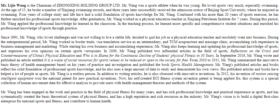 众兴体育文化,专注于运动健身服务市场的服务创新,通过数字化、标准化、科技化、规模化运营,帮助线下门店快速提升品牌力和影响力。同时,通过对人体指标数据的分析,在科学数据的精准分析基础上,为用户提供一套适合自身个体的系统化、智能化的健身运动解决方案。通过智能装备、大数据分析、数字化手术等高科技设备和数字化手术工具,通过体能锻炼数据采集系统和数字化大数据分析系统,科学、准确、有效地提高人民群众身体素质 ,打造全民健身、普惠运动、智慧健身的全球运动健身服务产业。
