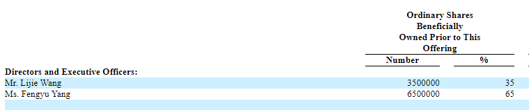 杨凤玉女士 Ms. Fengyu Yang,持股65%。
