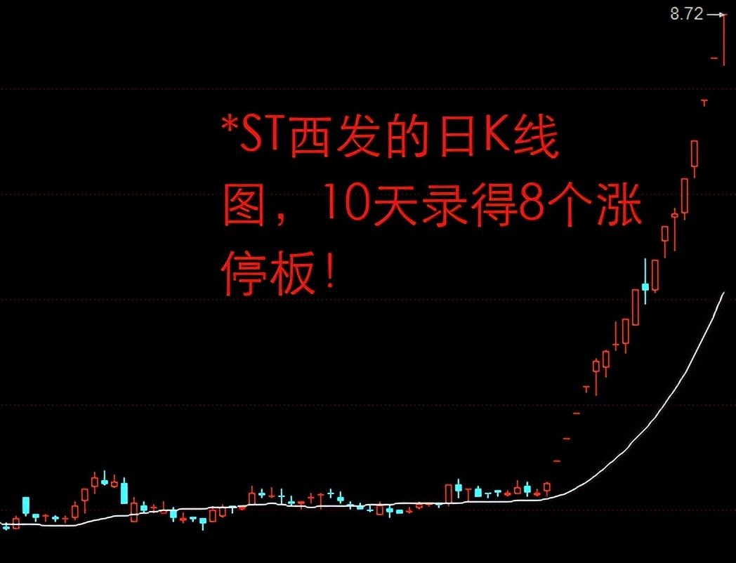盘面上,*ST西发依旧以一字涨停板的价格呈现在股民的面前,不过在盘中多次打开涨停板,但最终还是收于涨停,这是它10天内豪取的8个涨停板!对此,有股民感叹道:“妖股可遇不可求”!若是将*ST西发之前的日K线图连在一起,它的“妖股”属性更明显!市场其实有的时候需要有妖股横行,毕竟只有赚钱效应才能激发起股民的信心!