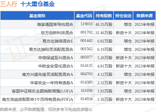 根据2023半年报公募基金重仓股数据,重仓该股的公募基金共15家,其中持有数量最多的公募基金为海富通国策导向混合。海富通国策导向混合目前规模为14.56亿元,最新净值1.8027(8月14日),较上一交易日上涨0.14%,近一年下跌8.08%。该公募基金现任基金经理为胡耀文。