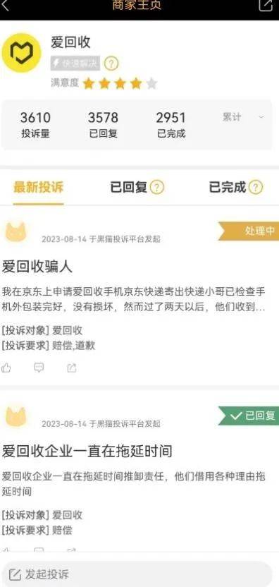 图源:爱回收黑猫投诉截图
