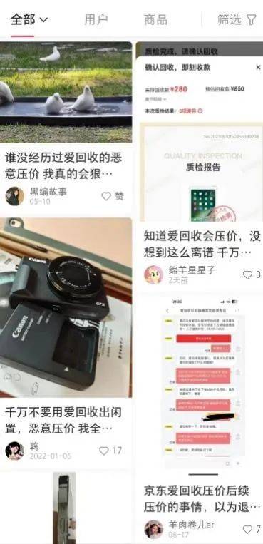 图源:小红书上对爱回收恶意压价的吐槽