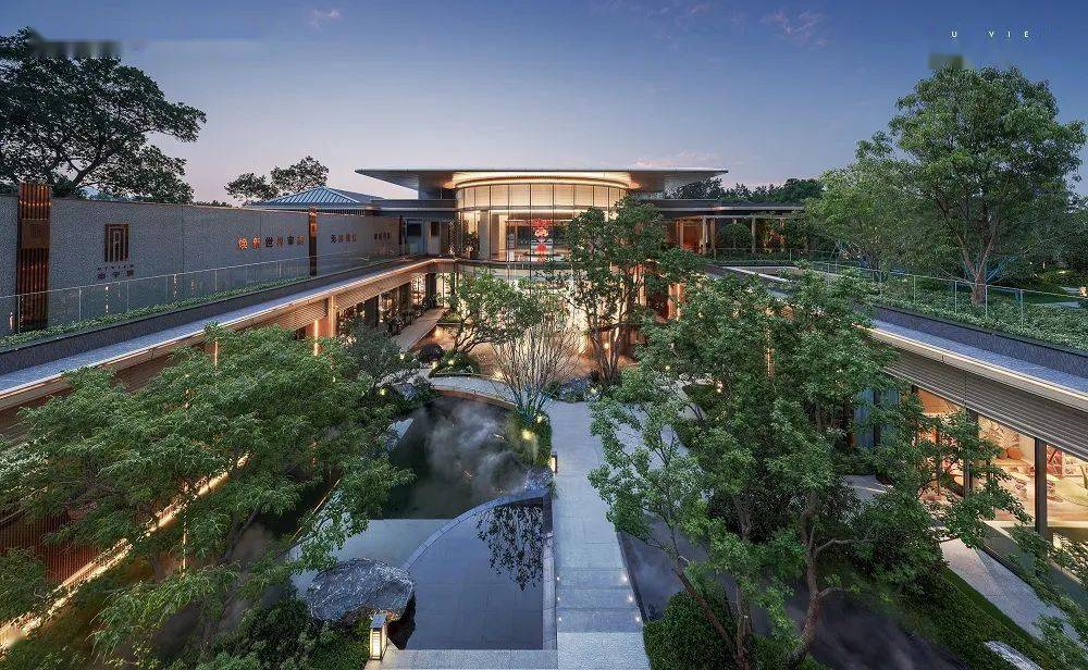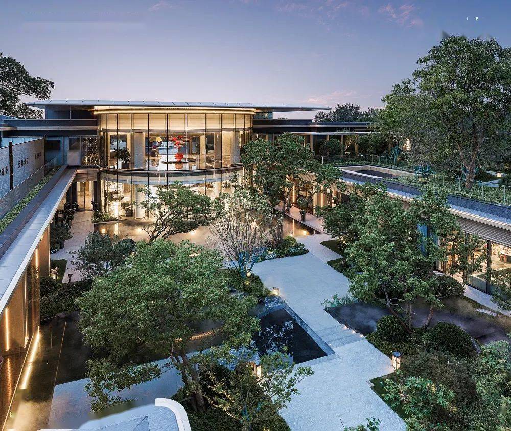 中宁府还打破传统住宅景观模式,精心营造下沉式庭院,将李白《登金陵凤凰台》中“三山半落青天外,二水中风白鹭洲。”所描绘出的自然盛景,完美复刻还原于下沉式庭院之中。以中心景观廊桥平台为轴,一分为二,北侧近建筑之旁设一镜面水景,南侧则为叠水绿岛,自然诗意包围,私密与盛景于同一空间完美相融。