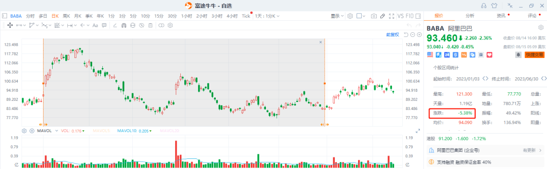 阿里巴巴还算好些,但Q1的一月份也已经是阿里的最高点。整个上半年仅跌去5.3%,若从最高位到最低位算,阿里也有20%-30%的回撤。