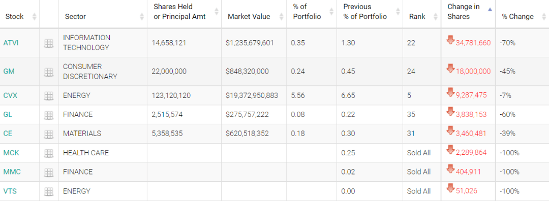 除了重仓股,还减持了动视暴雪、通用汽车、化工公司CE、保险公司GL。