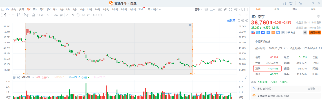 在Q1的第一天,就已经是京东的最高位,京东上半年整整跌去36%,一路下跌几乎没有反弹。在这种走势下,想必Burry老哥也被上了一课。