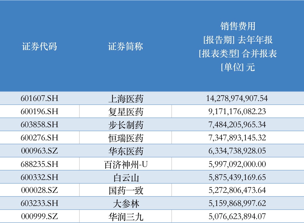而整个A股现有医药行业上市公司“销售费用”等数据也成为各方关注的重点,蓝鲸财经记者统计了行业内485家上市公司的相关财报数据,去年整个行业合计支出销售费用达到3489亿元,其中前2%的公司就合计贡献了全行业20%的销售费用支出。