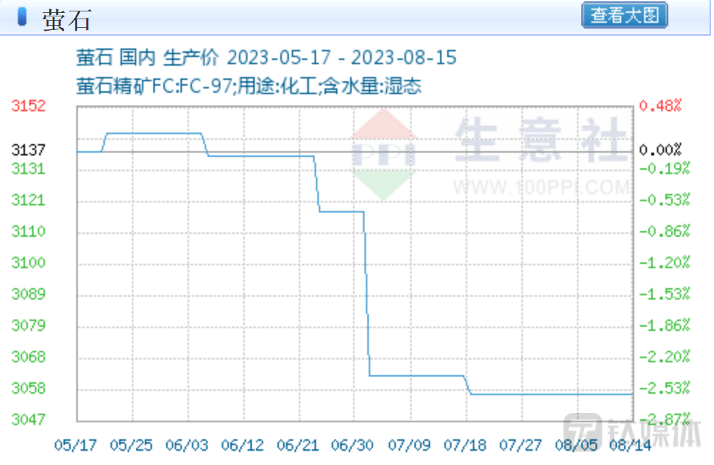 一方面,从萤石价格数据来看,去年末其价格曾一度逼近3500元/吨高位,今年5月-6月份稳定在3100元/吨左右,而近来价格出现回落走低,未来是否继续走低存在不确定性。