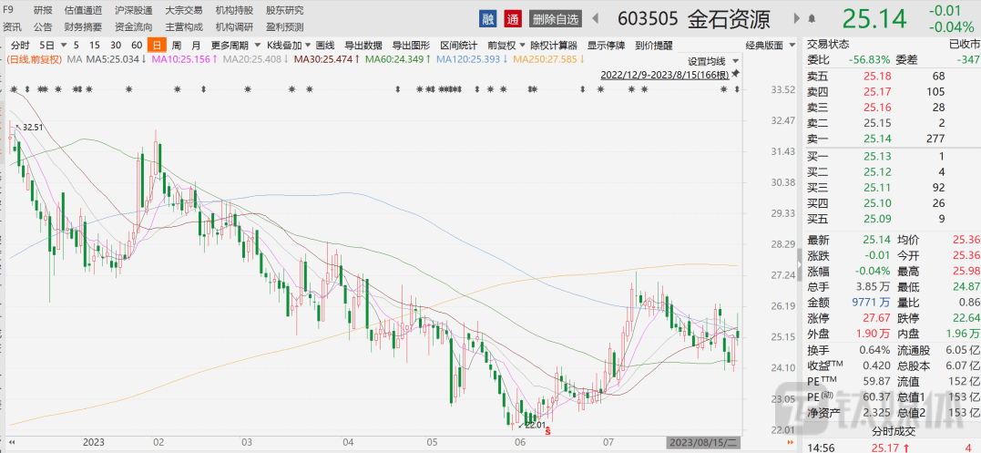 虽然业绩利好,但是二级市场股价却高开低走,并不买单。截至8月15日收盘,公司股价报收25.14元,下跌0.04%,总市值153亿元。