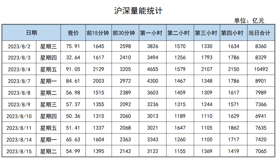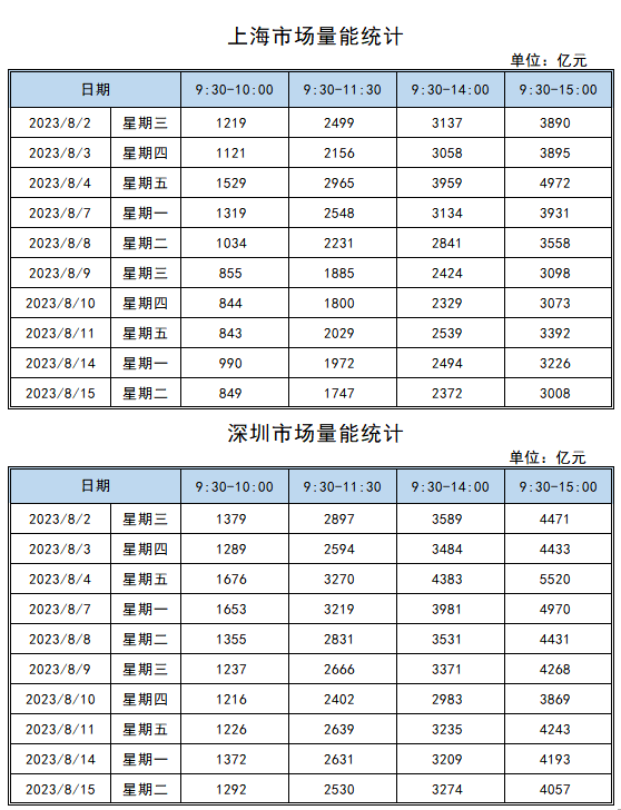 8月15日,上海市场成交额为3008亿元,深圳市场成交额为4057亿元,较前一交易日均有所缩量。