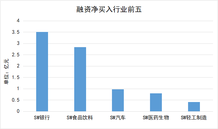 8月14日,融资净买入前五的行业分别为银行(+3.51亿)、食品饮料(+2.83亿)、汽车(+0.97亿)、医药生物(+0.79亿)、轻工制造(+0.41亿)。