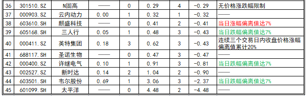 备注:红色字体表示个股当日涨幅偏离值达7%;绿色字体表示个股当日跌幅偏离值达7%。