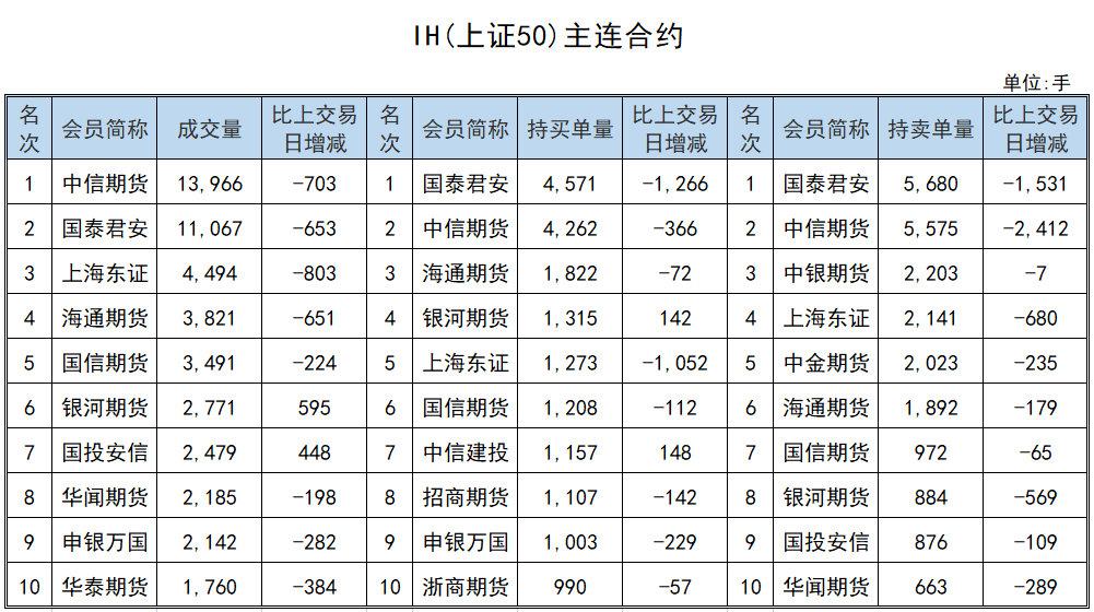 13股指期货机构持仓变化