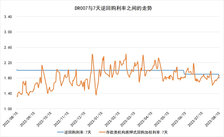 8月15日,逆回购利率为1.80%,DR007报1.8816%,目前DR007在7天逆回购利率附近,资金面合理充裕。