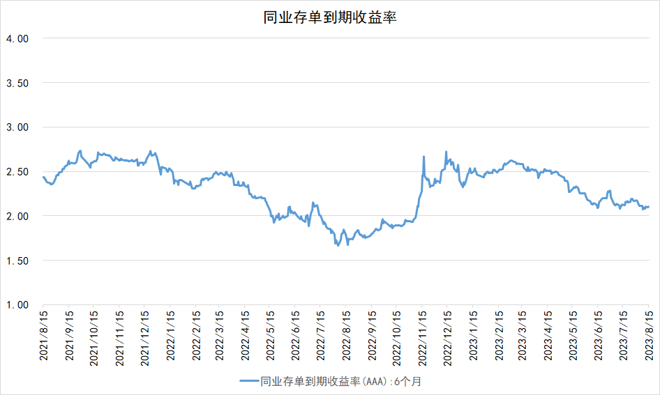 截至8月15日,同期限AAA+同业存单到期收益率为2.1025%,较前日上行0.37BP。