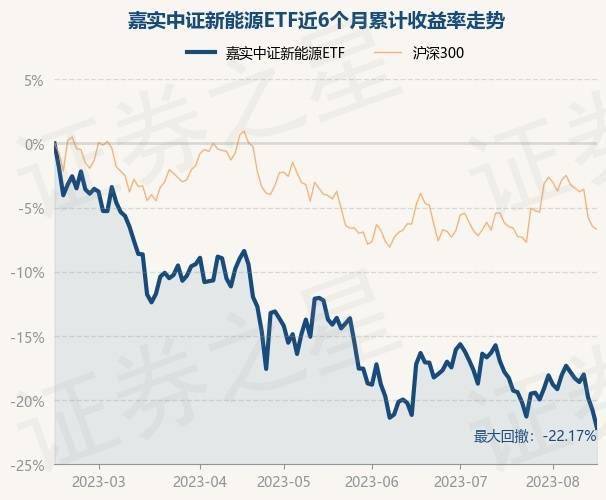 8月15日,嘉实中证新能源ETF最新单位净值为0.6279元,累计净值为0.6279元,较前一交易日下跌1.74%。历史数据显示该基金近1个月下跌6.24%,近3个月下跌11.45%,近6个月下跌22.16%,近1年下跌37.85%。该基金近6个月的累计收益率走势如下图: