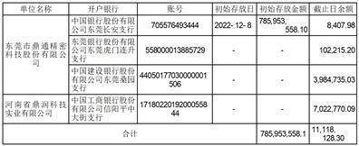 经中国证券监督管理委员会证监许可[2022]2411号文《关于同意东莞市鼎通精密科技股份有限公司向特定对象发行股票注册的批复》批准,公司向特定对象发行人民币普通股(A股)1,333.1104万股,募集资金总额为人民币799,999,551.04元,扣除各项发行费用(不含税金额)人民币14,760,683.06元,实际可使用募集资金净额为人民币785,238,867.98元。上述资金于2022年12月8日全部到位,业经立信会计师事务所(特殊普通合伙)审验,并于2022年12月8日出具了“信会师报字[2022]第ZI10572号”验资报告。公司对募集资金采取专户存储制度,并与保荐机构、存放募集资金的开户银行签订了募集资金三方/四方监管协议。