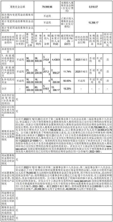 根据《上市公司监管指引第2号一一上市公司募集资金管理和使用的监管要求》、《上海证券交易所科创板上市公司自律监管指引第1号一一规范运作》等有关规定,东莞市鼎通精密科技股份有限公司(以下简称“公司”)2023年半年度募集资金存放与实际使用情况专项报告说明如下: