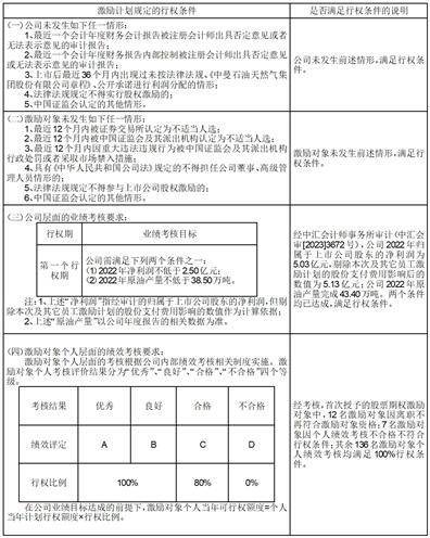 2023年8月15日,中曼石油天然气集团股份有限公司(以下简称“公司”)召开了第三届董事会第三十七次会议审议通过了《关于公司2022年股票期权激励计划首次授予股票期权第一个行权期行权条件成就的议案》,公司董事会认为2022年股票期权激励计划(以下简称“激励计划”、“本次激励计划”)首次授予股票期权第一个行权期行权条件已成就,公司董事会同意符合条件的激励对象进行股票期权行权,第一个可行权期可行权激励对象总人数合计136名,可行权数量合计1,186,250份,公司将根据董事会审议确认的情况,在政策规定的行权窗口期统一为激励对象申请办理首次授予的股票期权行权及相关的行权股份登记手续。