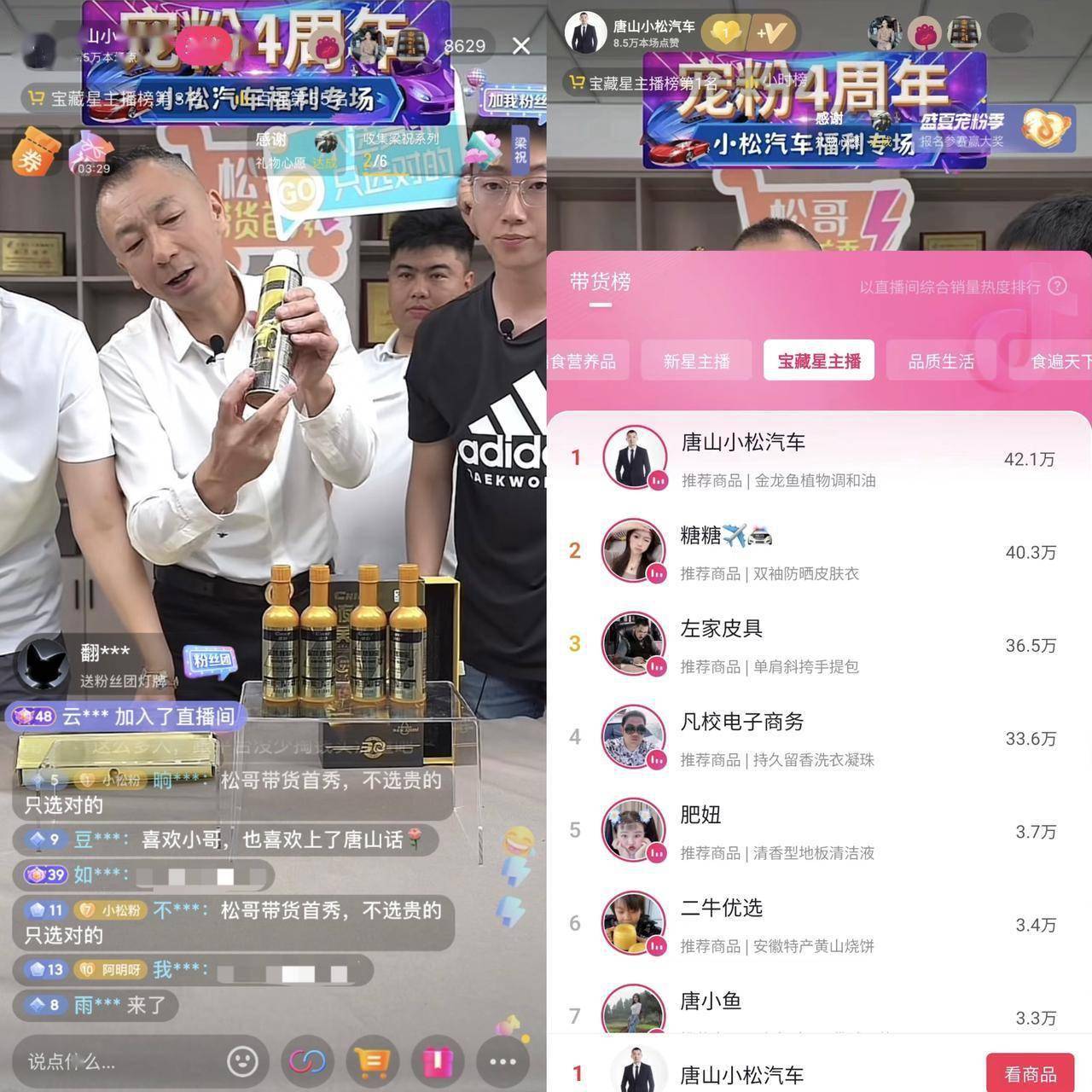 小松汽车来自河北唐山,用诙谐幽默的地道方言与粉丝进行交流,建立了牢固的信任关系。为了回应粉丝们的多层次需求,@唐山小松汽车 决定尝试更多新的领域,为他们带来更多价优且品优的生活好物。“不选贵的,只选对的”,在小松汽车团队筹备电商直播的半年时间里,帮粉丝严选好物,更好地服务粉丝成为团队的追求目标。在货品选择方面,为了契合账号定位和粉丝需求,小松汽车组建了汽车用品为主、日常用品为辅的直播货盘,运用汽车相关的专业知识和丰厚经验,为粉丝挑选高质量的汽车用品。这进一步提升了其账号的粉丝粘性和活跃度。在日常用品部分,小松汽车也在试图做到差异化和独特性。利用平台工具进行数据分析,构建粉丝画像,小松汽车团队制定了定位中高端的运营策略,在选品上注重酒水类商品的搭配,满足大多数用户的消费需求。7月22日,小松汽车首次电商直播,便取得了超出预期的成绩。未来,他将与更多优质品牌展开深层次合作,同时优化售后服务,努力回馈粉丝的支持与期望。
