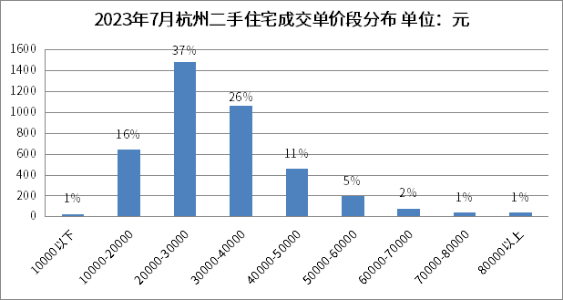 单价方面,二手房成交主要集中在2-3万单价段房源,占比约37%;其次是3-4万单价段房源,占比约26%。