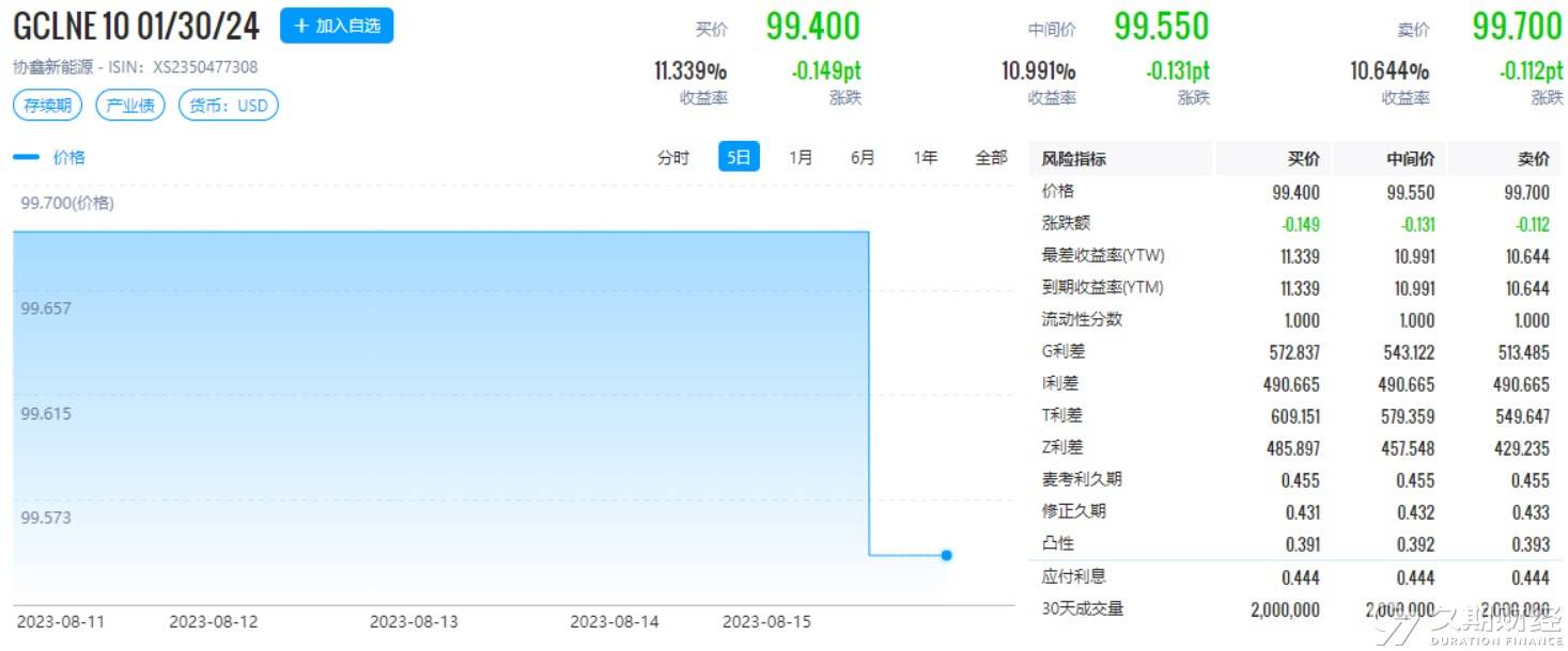 协鑫新能源(00451.HK)发布公告,已回购并注销约5532万美元GCLNE 10 01/30/24。相关美元债:
