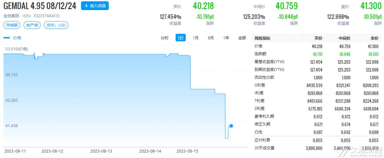 据媒体报道,金地集团(600383.SH)向债权人表示,已经于8月11日划转1190万美元的利息款项。据部分债权人表示,尚未收到相关款项,资金划转仍需几个工作日后才能到账。相关美元债: