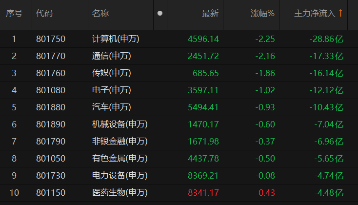 原标题:5大板块主力资金净流出超10亿元 计算机板块净流出超28亿元