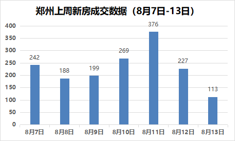 郑州新政10天,据360房产网数据上周(8月7日-8月13日)楼市成交有所抬头,郑州上周新房成交1614套,周环比涨27%;二手房成交1916套,周环比微涨2%。