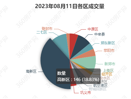 上周新房共成交1614套,整体较上上周2460套多成交343套,周环比涨27%。其中单日成交量最高的为8月11日,以376套排名第一,高新区以成交146套位居当日成交最高区域,占当日成交38.8%。